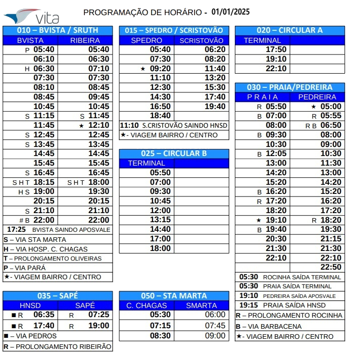 No feriado de 01 de janeiro de 2025, as linhas de ônibus seguiram uma programação especial, assemelhando-se à operação típica de domingo, com redução de atendimento em algumas rotas.
